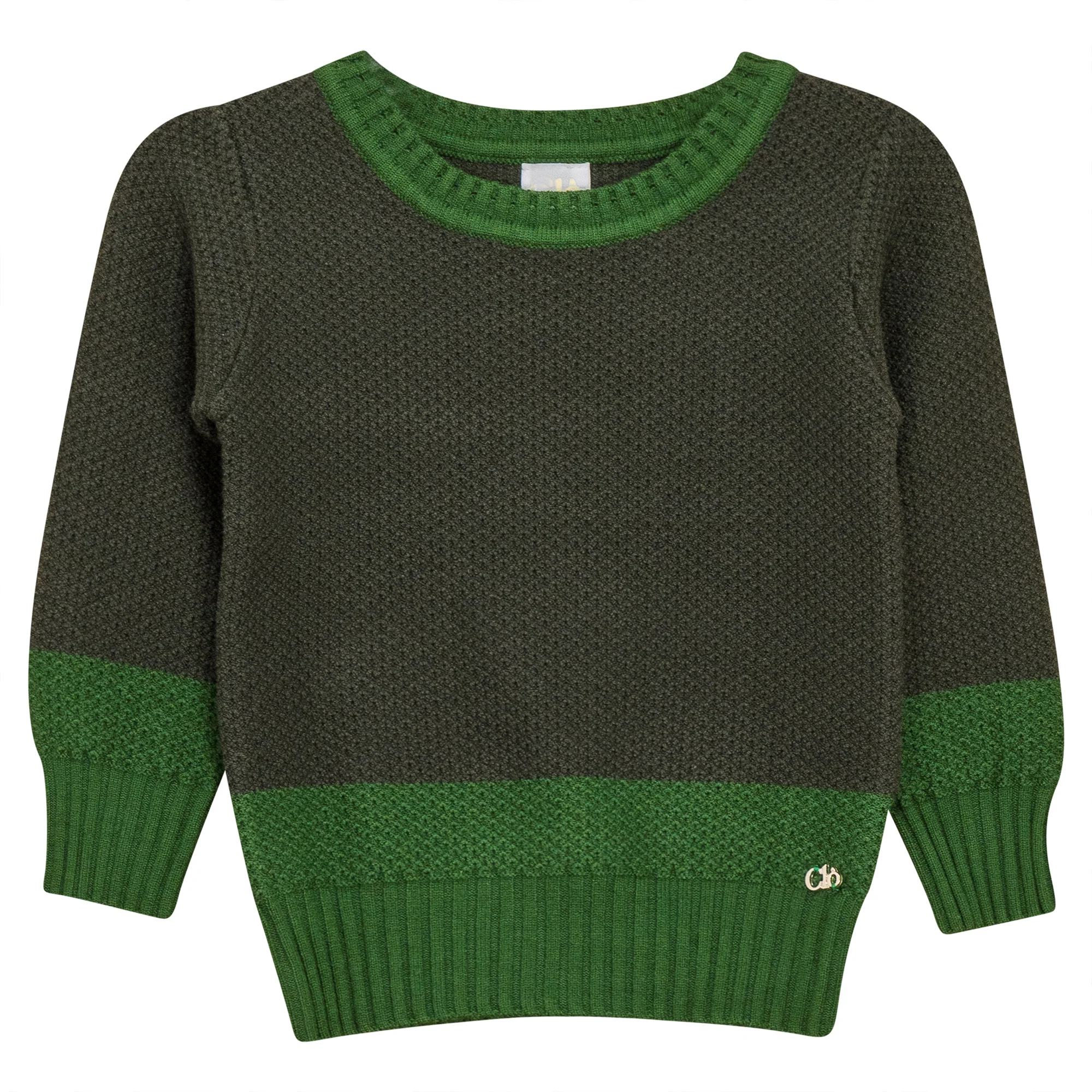 Boys long sleeve 2 tone textured knit sweater with ribbed neckband, cuffs and hemband. ֲ