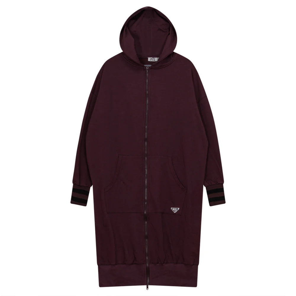 Teens cotton terry dress with long sleeves, hoodie and front zipper and pocketֲ