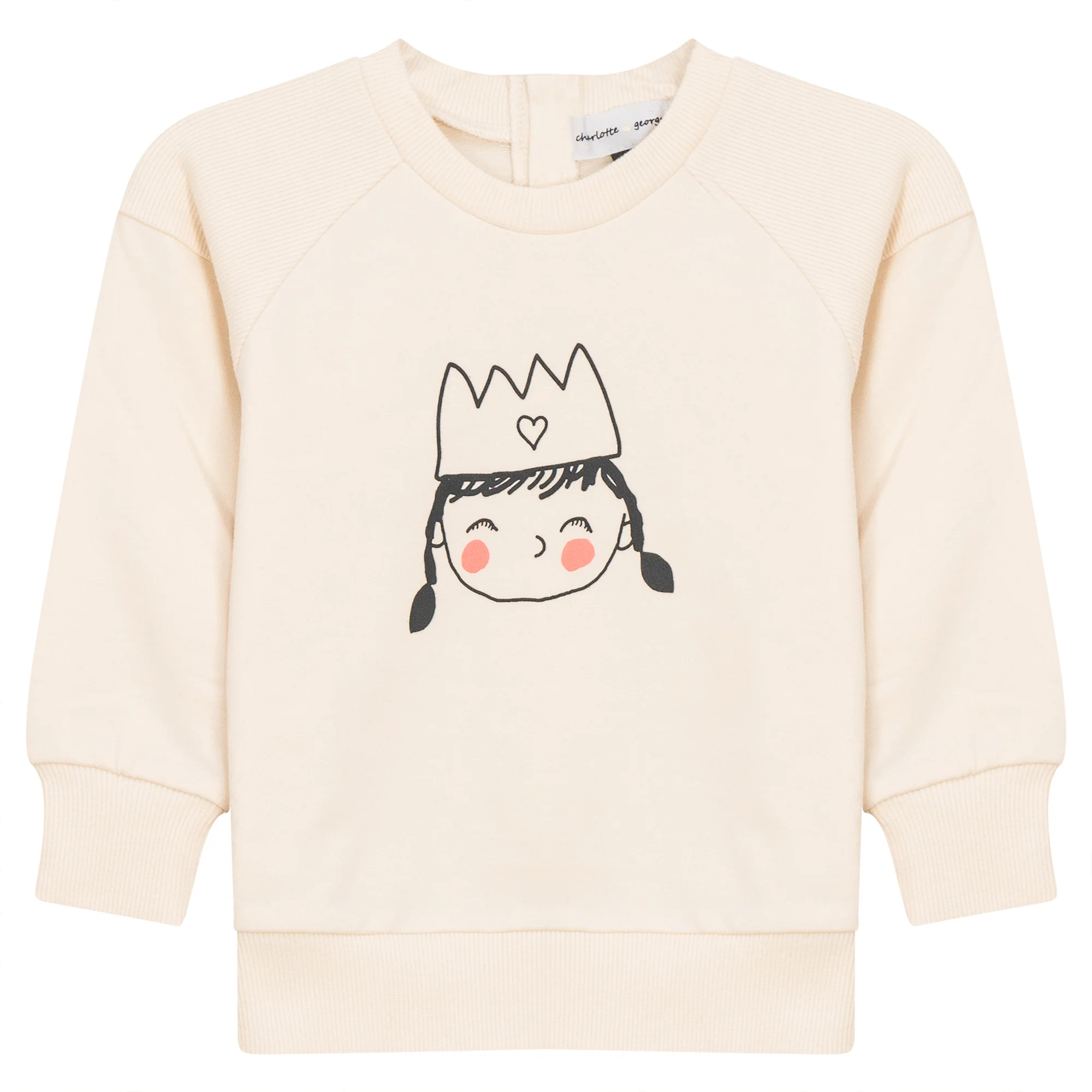 Girls long sleeve french fleece crown print sweatshirt with center back button opening, ribbed cuffs and hemband. ֲ
