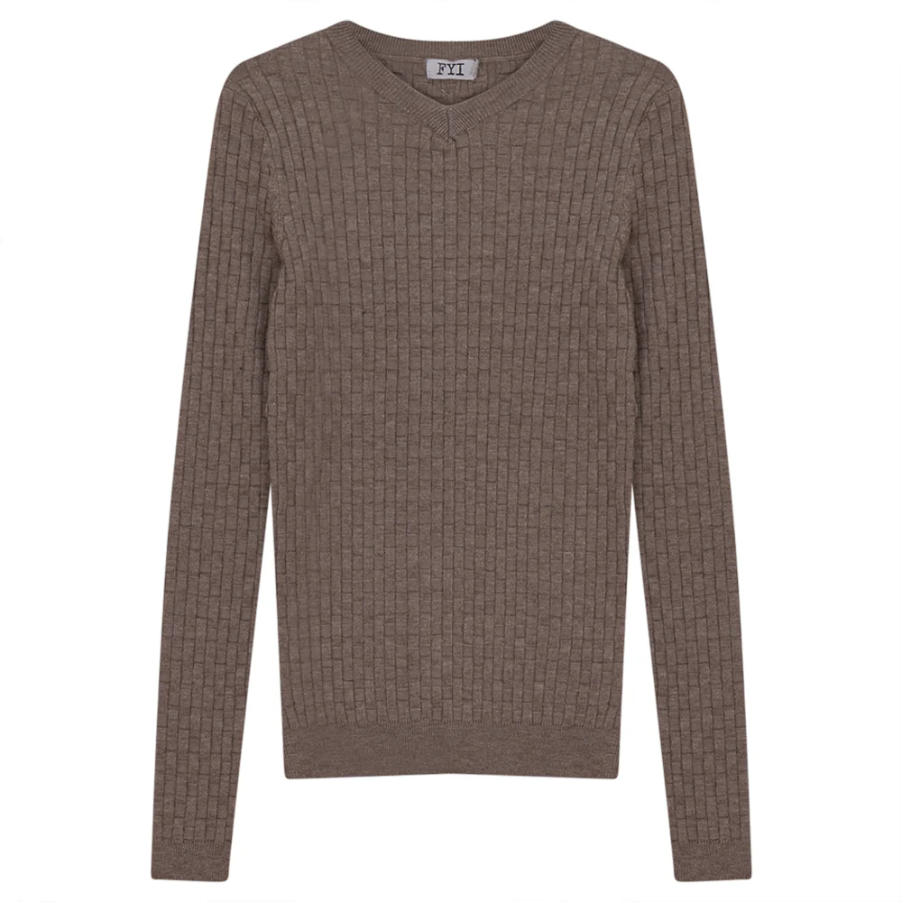 Teens knit textured, v-neck top with long sleeves and rib knit trimmingֲ