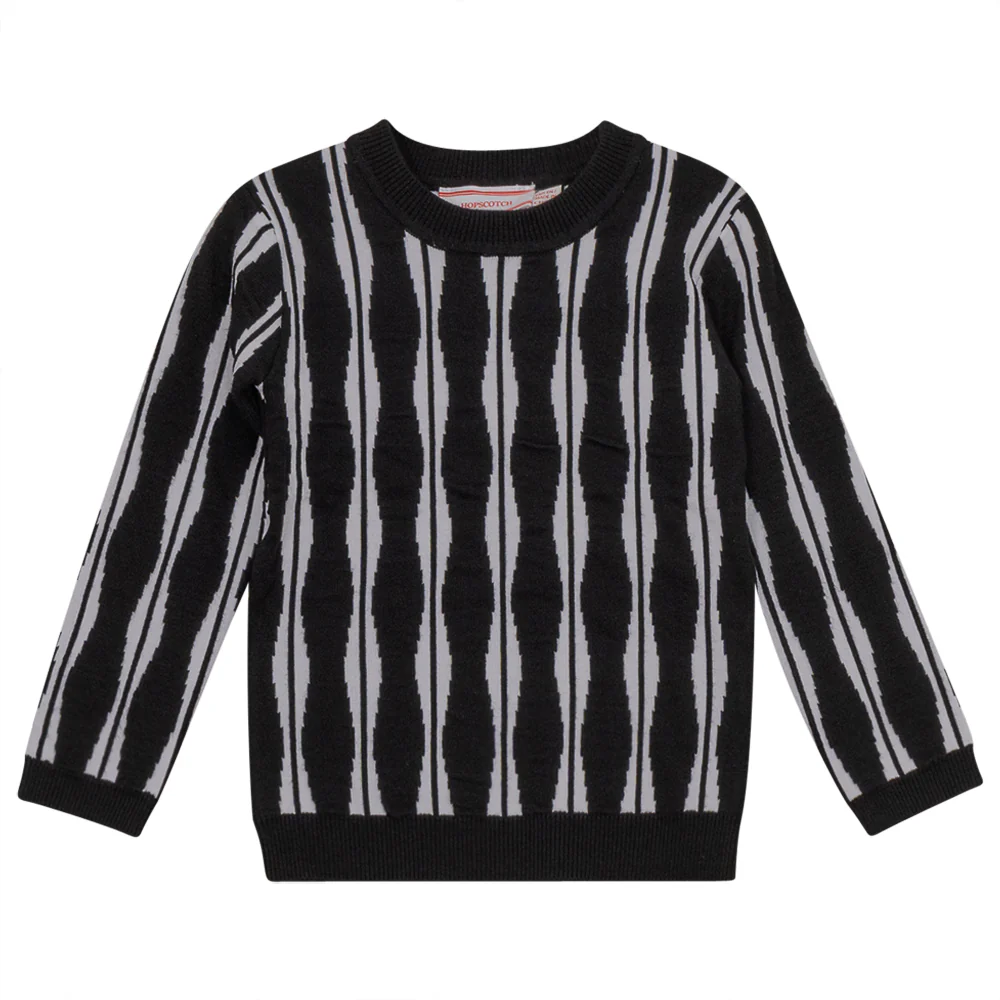 Boys knit jersey jacquard with waves all over design, long sleeves and trim at neckline, cuff and hemֲ