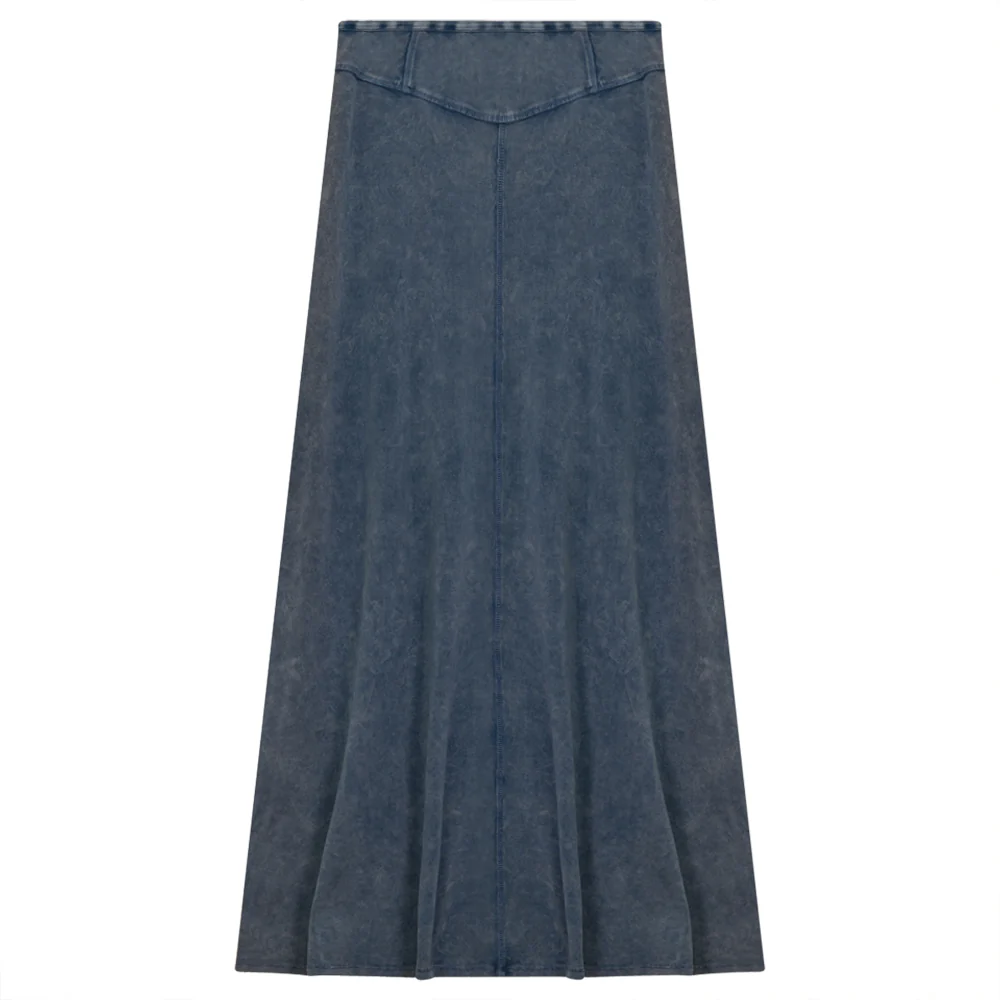 Ladies Long Denim Wash Skirt With Seam Down The Center