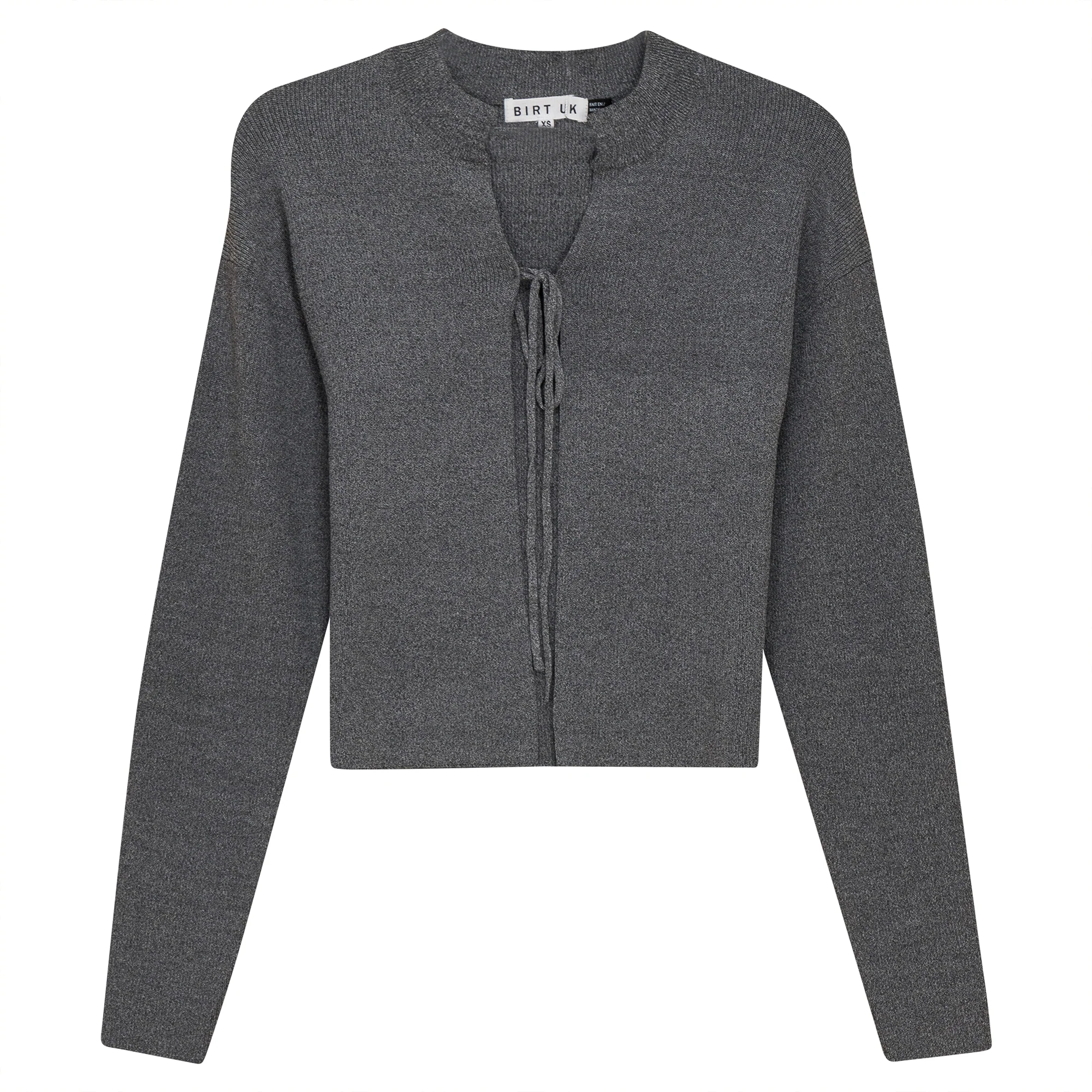 Ladies long sleeve rib knit cropped tie bolero.ֲ