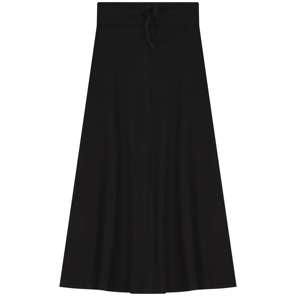 Ladies basic rib long skirt with front tie, elastic waistband and wide sweepֲ