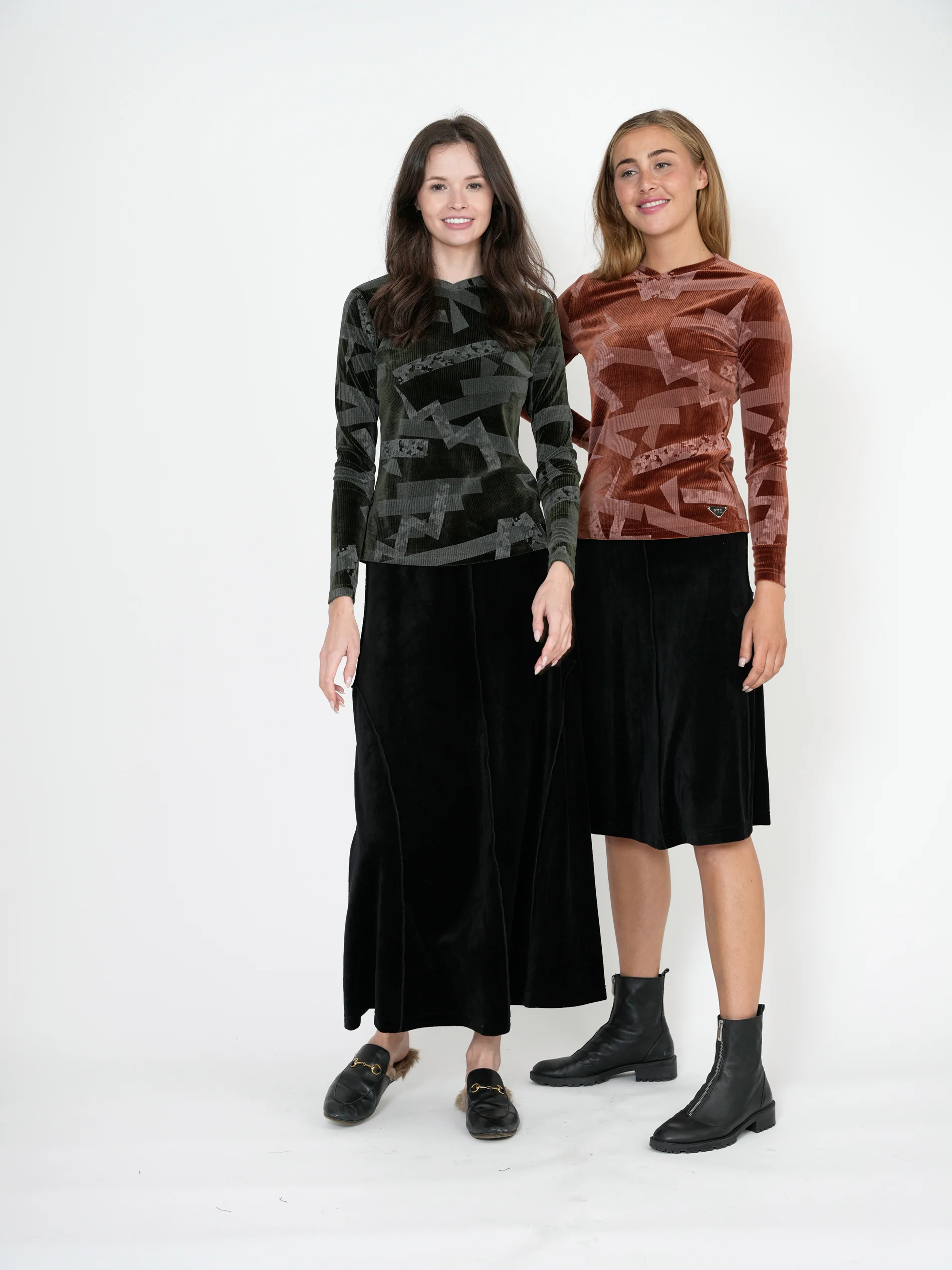 Teen rib velour print top with v-neckline and long sleevesֲ