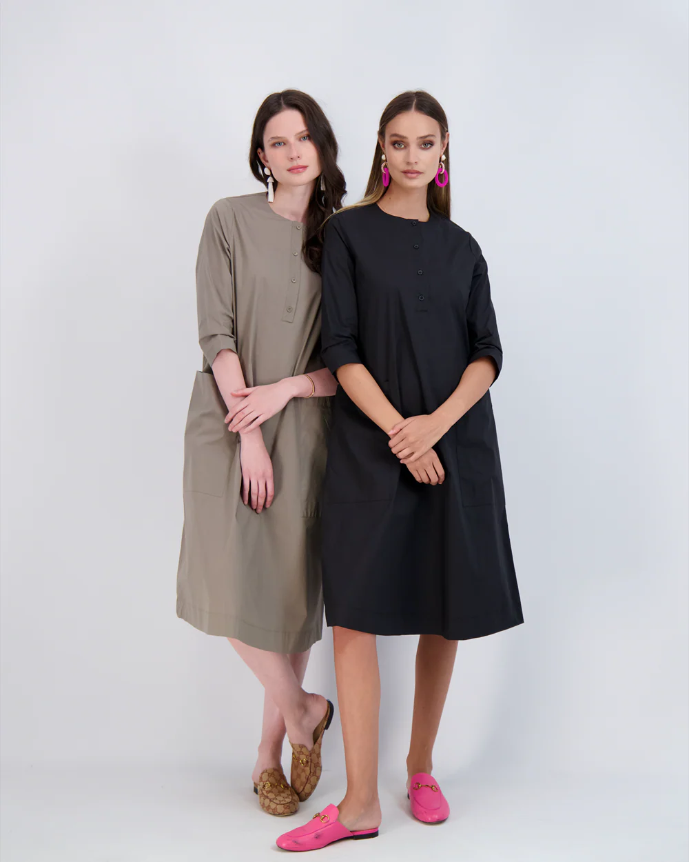 Ladies shirt dress with three quarter sleeves, center front placket and pocketֲ