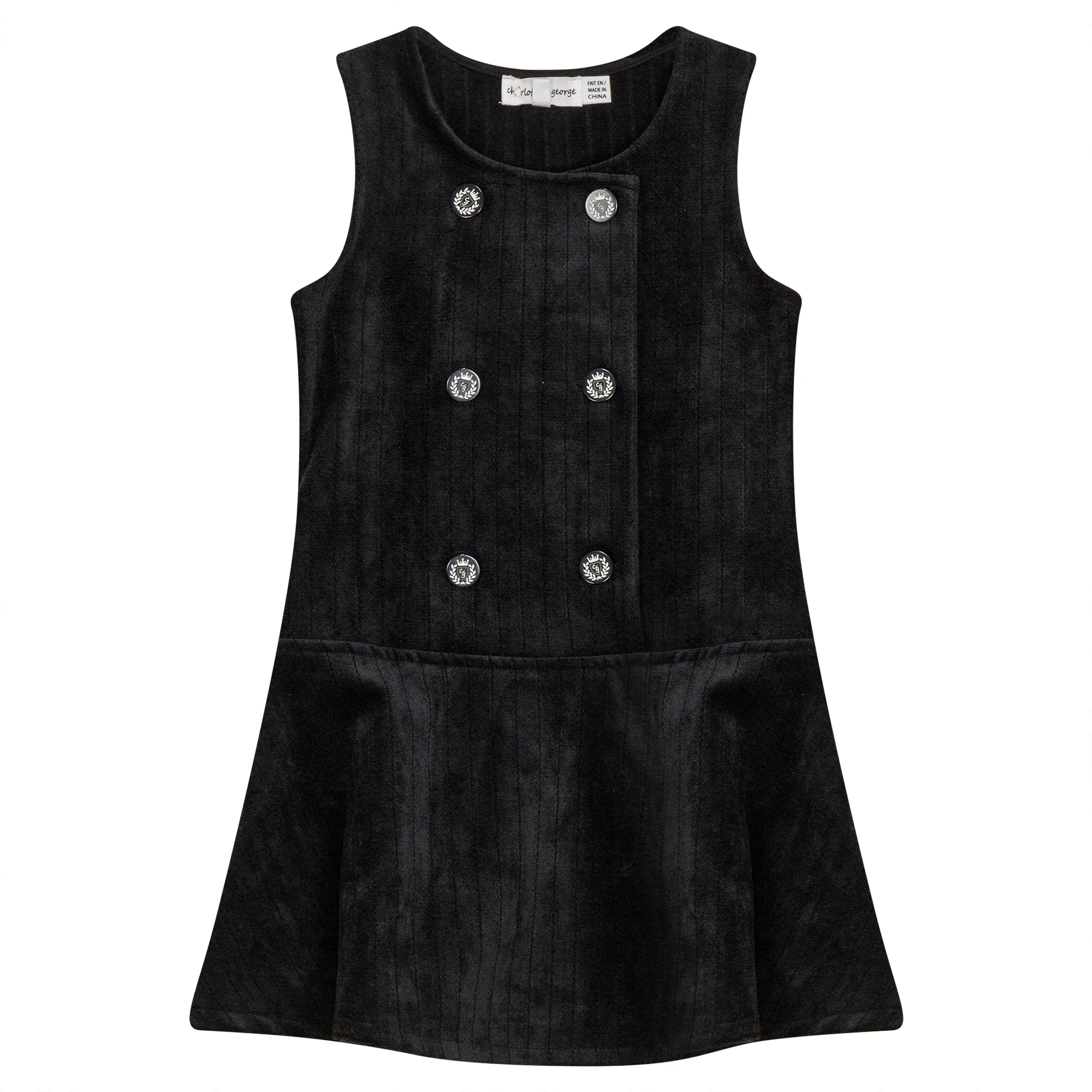 Girls striped velour jumper with buttons at front and ruffle at bottom. ֲ
